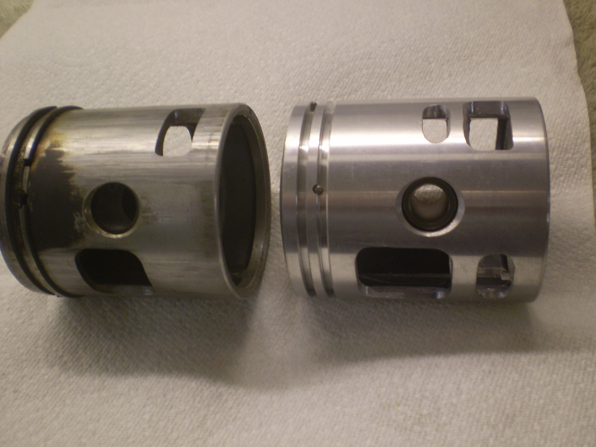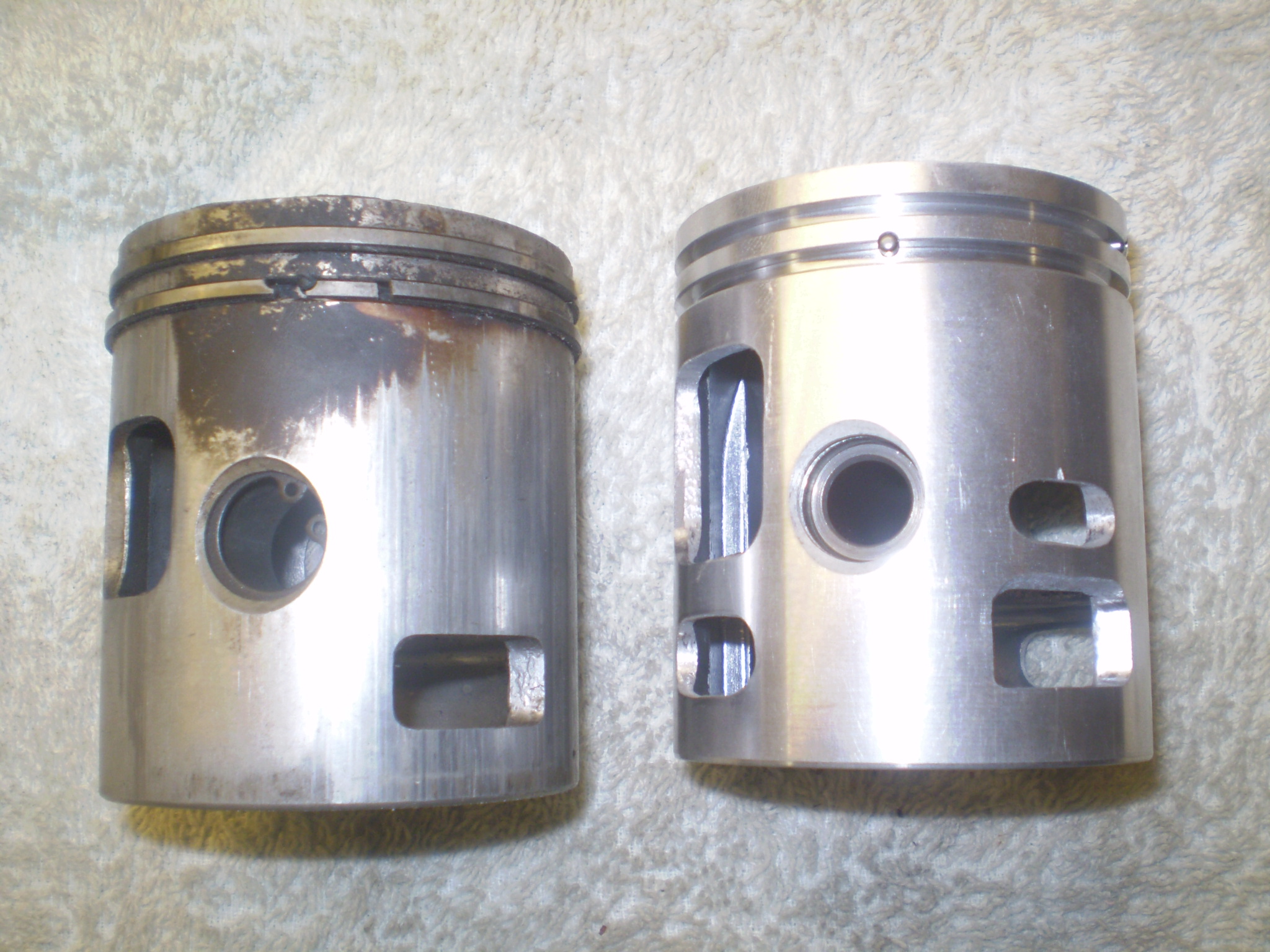 Standard P200, Andy just wanted a bit more power from his standard setup (already had sterling expansion chamber fitted) and kept the 24mm standard carb, i cut crank to 180 degrees, ported inlet area, ported the piston as per pics, and did a very mild tune to cylinder, then machined/lightened standard elec flywheel.......will dyno and post figures.