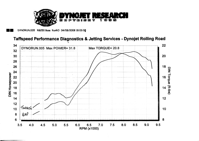 A usable range over 2500 - 3000 revs, this is my Taffspeed RB 250 with a Franspeed JL3