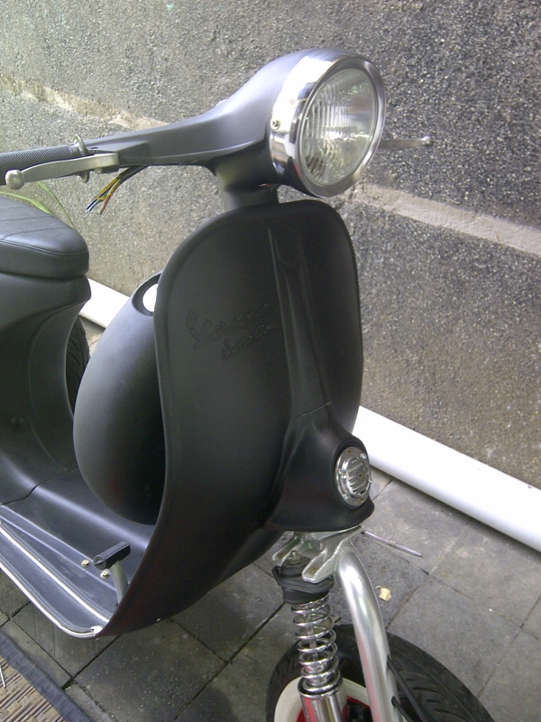 Badges were easily fitted and i got the result i was after in the end, although not shown the screws have been blacked out to complete the look and as you can see i have also picked up the head lamp completing the "face" of the scoot.