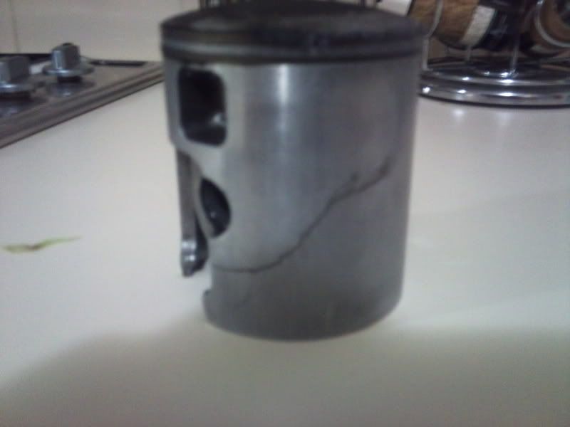 it wasnt a snaped ring but the piston skirt snaped off below the transfer window and the barrel cracked below the transfers also. the engine has only done 750 miles.