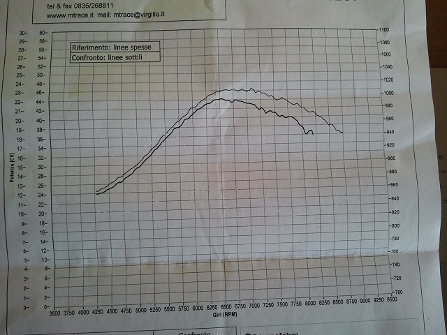 On the second run after setting up the carburation, it gave 3,5 cv and 1nm of torque more than the previuos pipe and something about 4 cv more than the Gori.